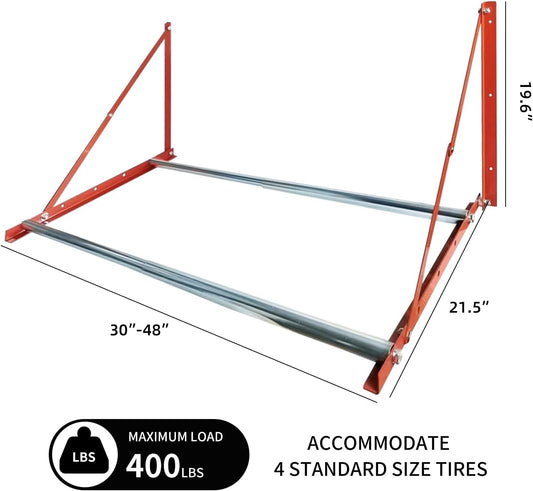 Foozet Heavy Duty Adjustable Wall Mounted Tire Rack for Garage with Telescopic Rods, Hanging Garage Tire Rack for Spare Car Wheel 420 lb.,Folding and Adjustable 30"-48" Tire Storage Rack