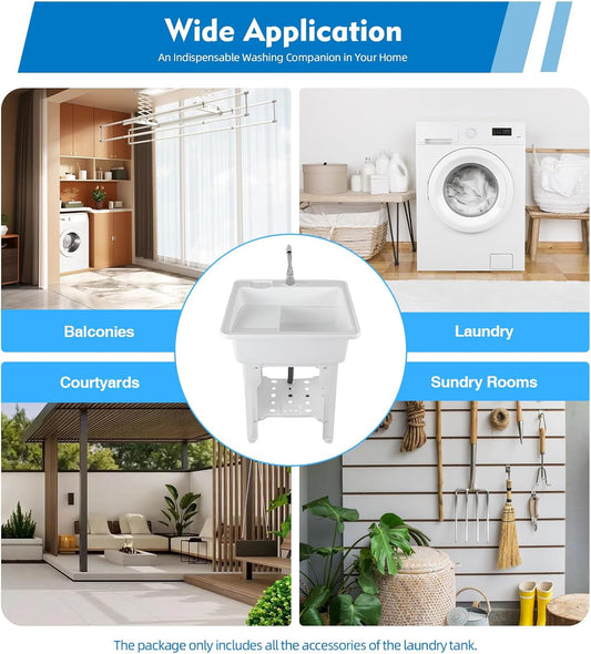 Freestanding Utility Sink Plastic Laundry Sink Spacious Laundry Tub Sink with Storage Shelf Indoor Outdoor Slop Sink Wash Station for Bathroom Laundry Washing Room (White, 25.6*21.65*31.5in)