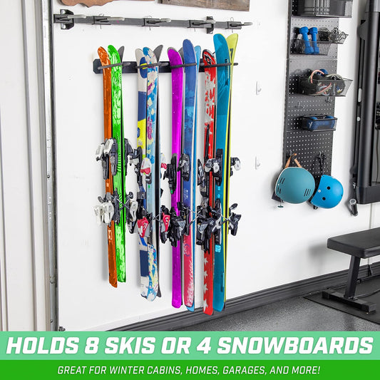 GoSports Wall Mounted Ski and Snowboard Storage Rack - 2 or 8 Ski Sizes