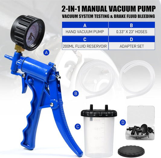 Hand Vacuum Pump Brake Bleeder kit One Person, Brake Clutch Bleeding Tune-up Kit for Brake Bleeding and Automotive Tester Blue