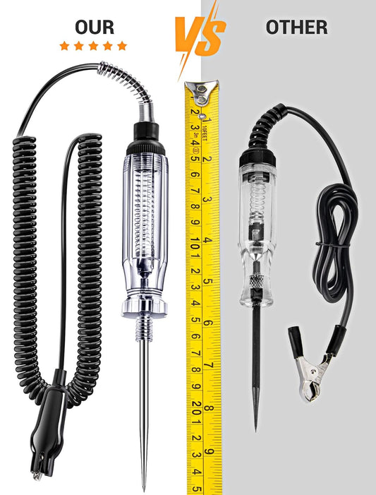 Heavy Duty Automotive Circuit Tester, Premium 6-24V Test Light with 135 Inches Extended Spring Wire & Stainless Probe, Circuit Voltage Tester with Replacement Indicator Light for Car/Vehicles