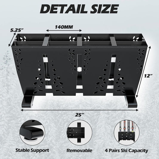Heavy Duty Metal Ski Storage Rack, 4 Pair Freestanding Steel Ski Holder, Floor Stand Ski Organizer Rack, Snowboard Floor Stand Organizer for Garage and Home