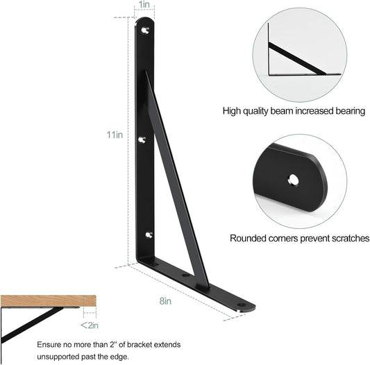 24 Pack L11 x H 8" Black Heavy Duty Shelf Brackets with Screws Metal Shelf Brackets Shelf Support Angle Brackets for Shelves L Brackets Heavy Duty Floating Shelf
