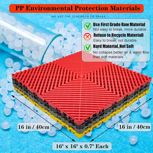 24 Pack 16"x16" Interlocking Garage Floor Tiles - Drainage Mats, Non-Slip, Heavy-Duty, Easy Install for Garage, Car Wash, Basement(Red)