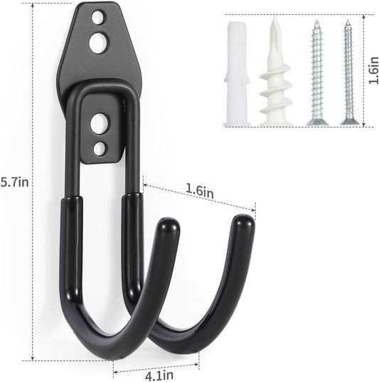 Hose Hanger Wall Mount 2 Pack,Heavy Duty Hose Holder with Screws Metal Hose Hangers for Outside,Hose Rack Suitable for Garage,Garden and Yard,Black