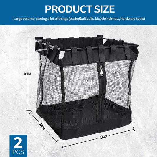 2Pcs Large Slatwall Baskets Mesh Slatwall Baskets with Zipper Mounted Storage Baskets Hanging Slatwall Accessories for Shops Rooms Storage Display Organizing(16 * 12 * 16inch)