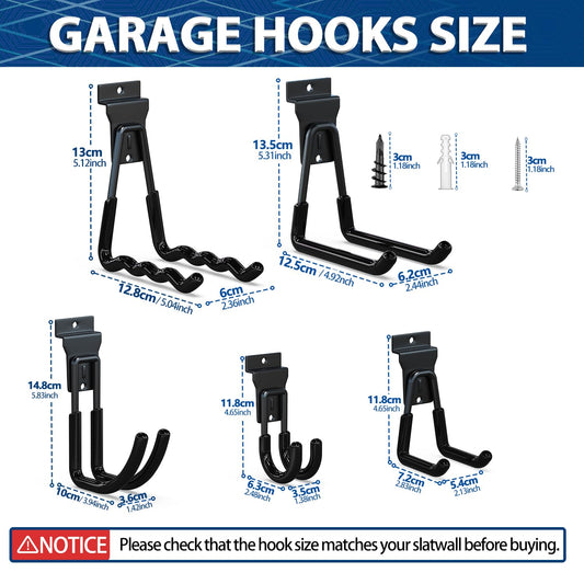 3-H Slatwall Accessories 10 Pack,Slatwall Hooks & Hangers 5 Sizes,Slat Wall Hanging Hooks Heavy Duty,Proslat Accessories for Garage Storage Wall Panels Organzing Garden Tools Chairs Ladder(Black)