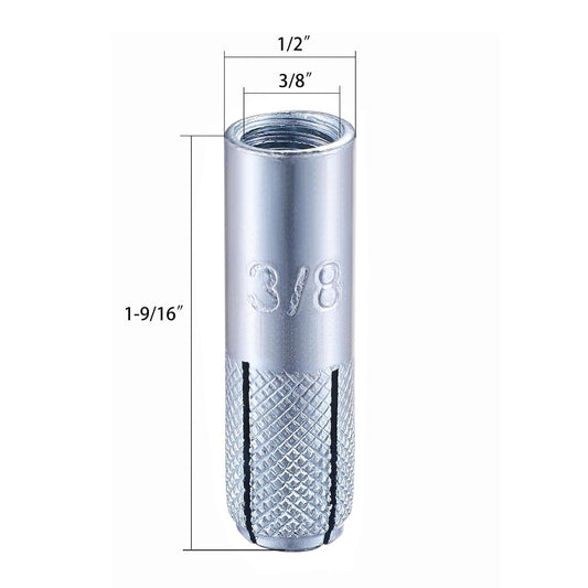 Wensilon(20 pcs) 3/8"-16 Premium Zinc Plated Carbon Steel Drop in Anchors Assortment, Knurled Drop-in-Anchor for Solid Concrete, Internal Forced Expansion Screw Bolts