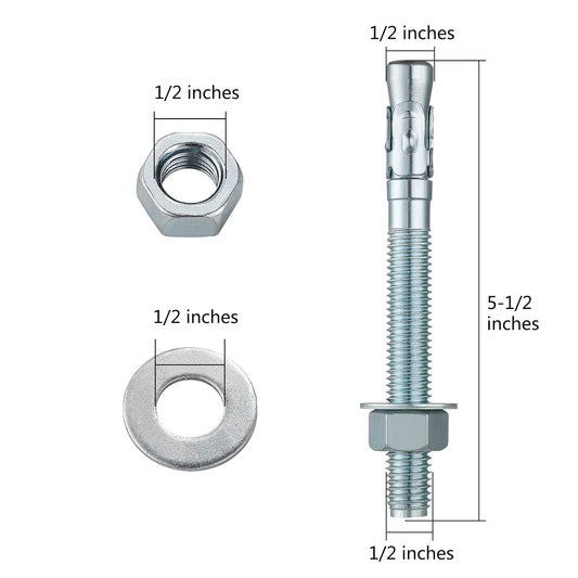 1/2x5-1/2" 10Pcs Inch Standard Fasteners for Heavy-Duty Zinc Wedge Anchors for Cement and Concrete