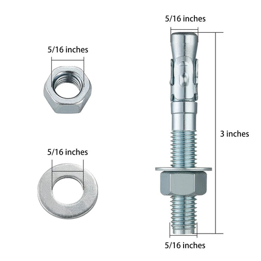 5/16x3" 10Pcs Inch Standard Fasteners for Heavy-Duty Zinc Wedge Anchors for Cement and Concrete