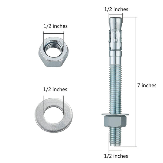 1/2x4-1/2" 10Pcs Inch Standard Fasteners for Heavy-Duty Zinc Wedge Anchors for Cement and Concrete