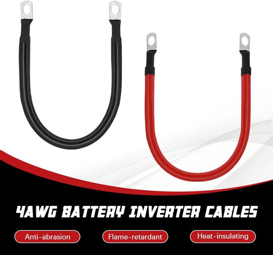 4 AWG Battery Cable 4 Gauge Pure Copper Battery Inverter Cables with 3/8 in Lugs Both Ends Power Inverter Wire Set for Automotive Solar Power Inverter Marine Boat RV Car Motorcycle (1FT)