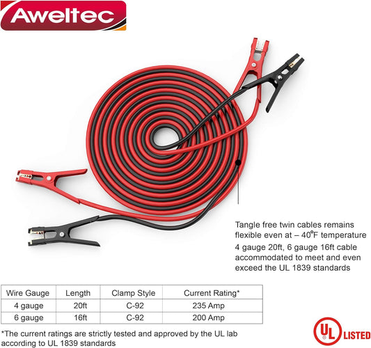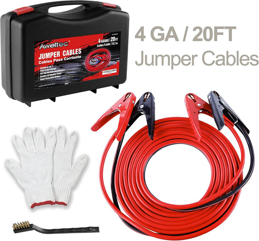 UL-Listed Jumper Cables - 4 Gauge 20 Feet Battery Cables for car, Heavy Duty Booster Cables (4AWG x 20Ft) with Carry Bag