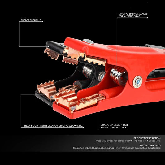 Auto Dynasty Heavy Duty 20 Feet 4 Gauge Booster Cable Power Jumper 500 AMP Emergency Battery Start Car/Motorcycle