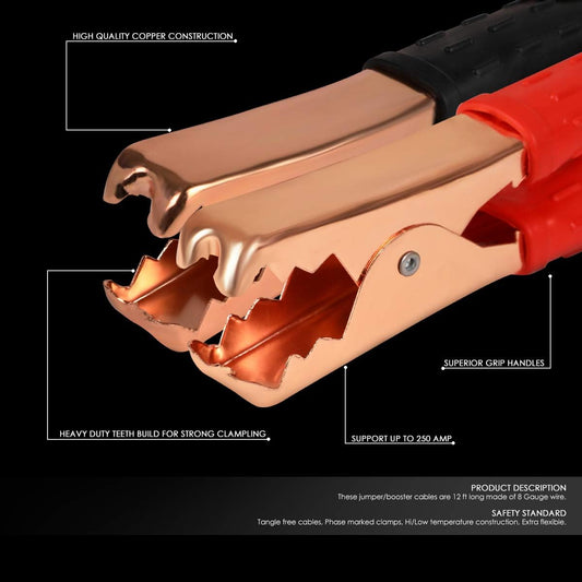 Auto Dynasty Heavy Duty 12Ft 8Gauge Booster Cable Power Jumper 250AMP Emergency Battery Start Car/Motorcycle