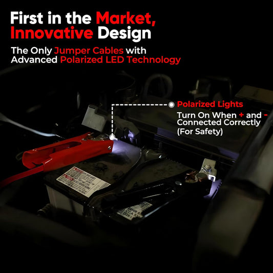 Illumi Heavy Duty Jumper Cables Kit - 12FT, 6GA Jump Cable for Car, Truck - W/LED Indicators for Night Use, Reverse Polarity Protection, Copper Wire - Traditional Front-to-Front Design