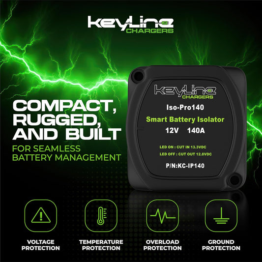 Dual Battery Isolator Kit 12V - 140 Amp Voltage Sensitive Relay (VSR) for Dual Battery Setup - Automatic Disconnect Switch for Car, Truck, RV, UTV, ATV, Marine