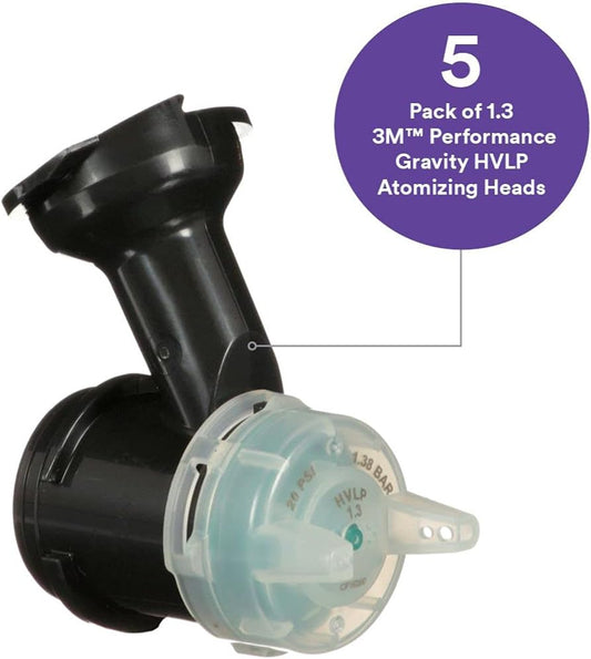 3M Performance Gravity Fine Finish (Compliant) Atomizing Head 26913, Green, 1.3, Pack of 5, for Automotive Paint Application, High Viscosity, Clear Coat, Primer Spraying