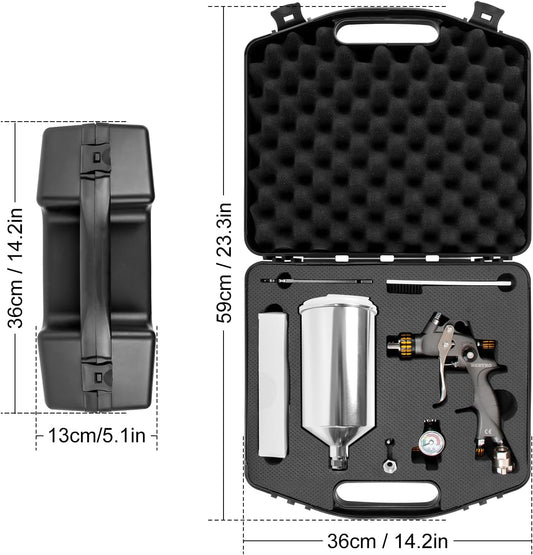 HVLP Spray Paint Gun, Automotive Gravity Feed Paint Gun Kit with 5 Nozzles,1.4mm 1.7mm 2.0mm 2.5mm and 3.0mm, 1000cc Aluminum Cup, Suitable for Auto Paint, Painting Cars