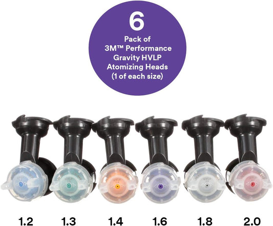 3M Performance Gravity HVLP Atomizing Head Variety Kit, 26730, Sizes 1.2, 1.3, 1.4, 1.6, 1.8, 2.0, for use Performance Spray Gun PPS 2.0 Paint Cups, Pack of 6, Black