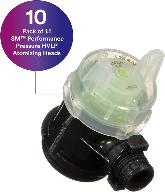 3M Performance Pressure HVLP Atomizing Head Refill Kit, 26811, Size 1.1, Yellow, for use Performance Industrial Spray Gun, 10 Pack