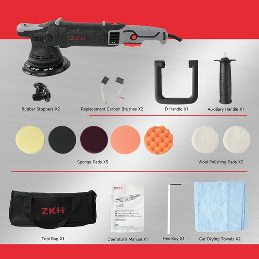 ZKH Buffer Polisher, 6 Inch Car Buffers and Polishers Kit, 21mm Orbit Dual Action Polisher with 1000W Powerful Motor, 4800OPM Buffer Polisher for Car Detailing and Waxing