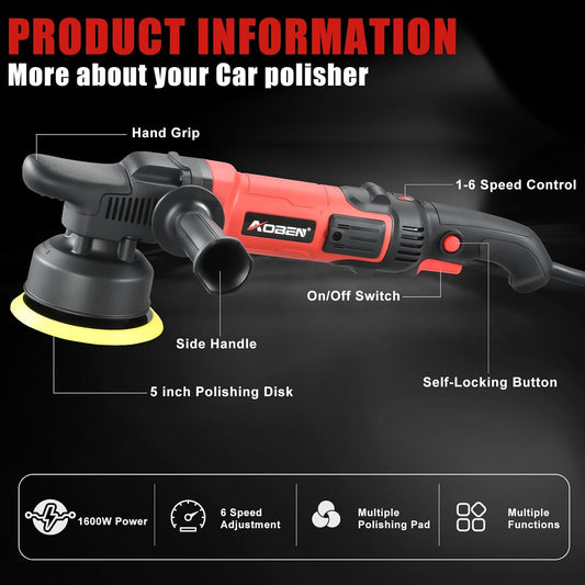 AOBEN Car Buffer Polisher,6 inch Dual Action Polisher,Random Buffer Polisher kit with 6 Variable Speed 1000-4500rpm,Detachable Handle,4 Buffing Pads for Car detailing Polishing and Waxing