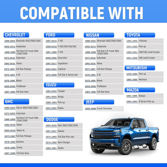 Kojem 2Pcs Silvery Aluminum Universal Side Step Compatible with Chevy Chevrolet GMC Ford Isuzu Mitsubishi Dodge Jeep Nissan Toyota Mazda Side Hoop Step Polishing