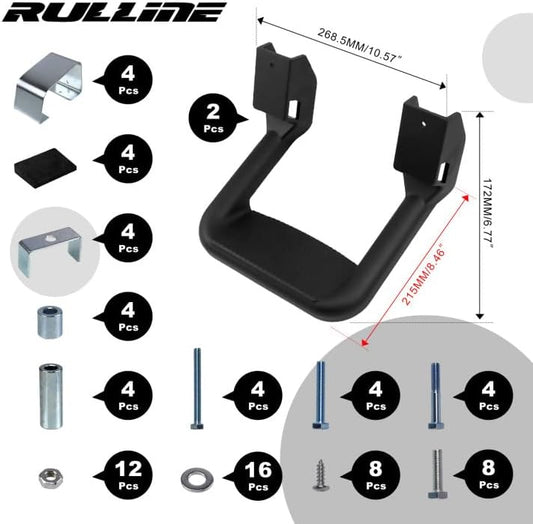 RULLINE Black Powder Coated Truck Side Step Set - 2 Pieces (1 Pair) with Mounting Brackets - Compatible with Chevy (Chevrolet), Ford, Toyota, GMC, Dodge RAM, and Jeep Trucks