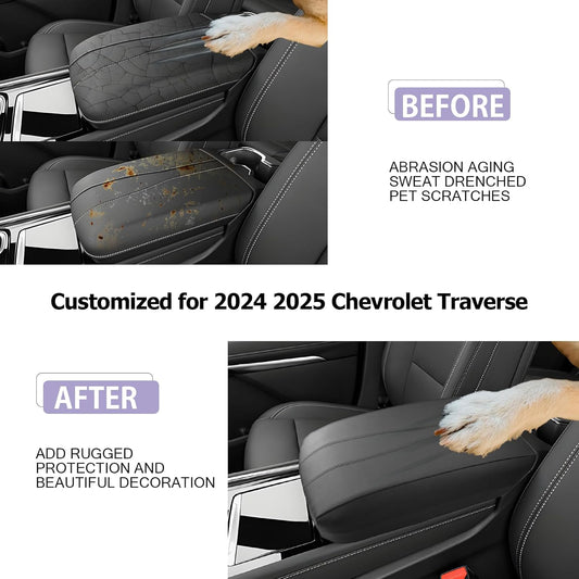 LUWU 2025 2026 Traverse Center Console Cover Compatible with 2024 2025 2026 Chevrolet Traverse Accessories 2025 2026 Traverse LT/RS/Z71/High Country Armrest Console Cover (Thin Black)