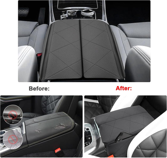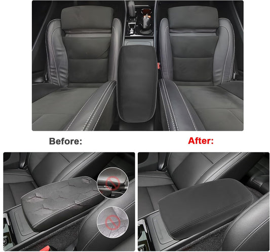 Car Center Console Cover, Memory Foam Car Armrest Cover, Black Arm Rest Covering Car, Middle Organizer Elbow Pillow, Leather armrest Cover for Car/SUV/Truck/Auto (No.2 Black)