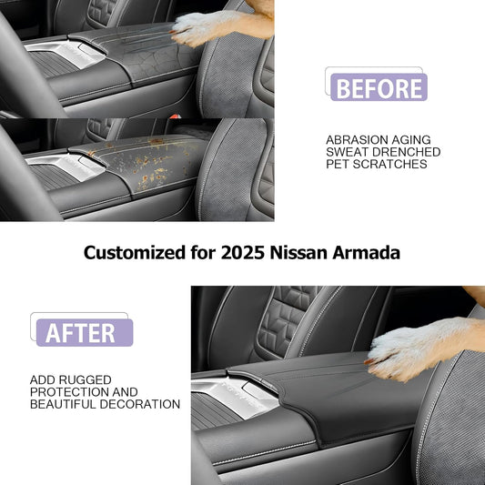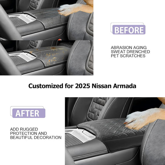 LUWU Center Console Cover Compatible with 2025 Nissan Armada Accessories 2025 Armada SV/SL/Platinum Armrest Cover Armrest Console Cover (Thick Black)