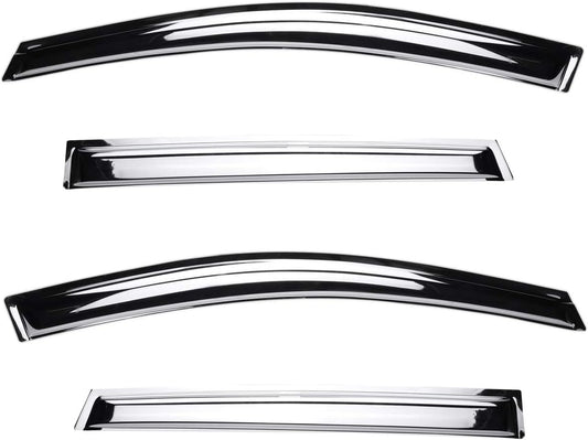 Chrome Side Window Visors Vent Deflector for 2001-2003 Ford F150 SuperCrew Cab,2002-2003 Lincoln Blackwood,4pcs Outside Tape-On Sun Rain Guards Set 94949Y