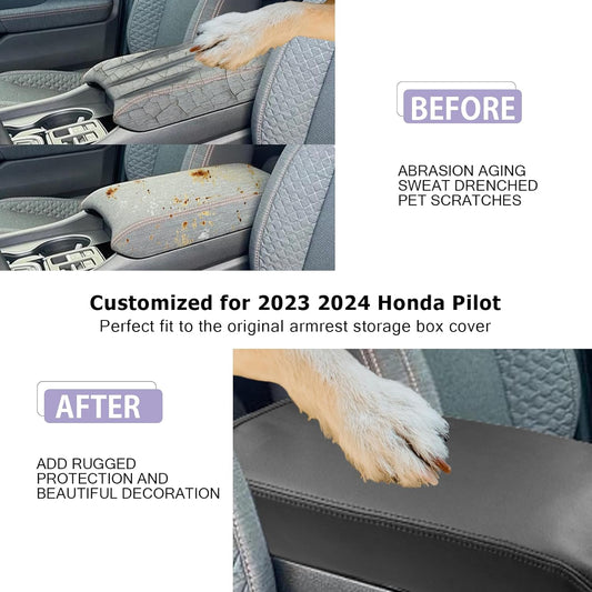 LUWU Center Console Cover Compatible with 2023 2024 2025 Honda Pilot & 2024 2025 Ridgeline & 2024 2025 2026 Honda Passport Accessories Armrest Console Cover Leather Interior Accessories (Thick Black)