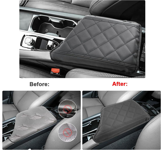 SXCY for 2025 Volvo XC60 Armrest Cover [Add Pad] for Volvo XC60 2018-2025 Accessories 2025 XC60 Center Console Cover 2025 XC60 Middle Console Cover (Black Checkered Pad)