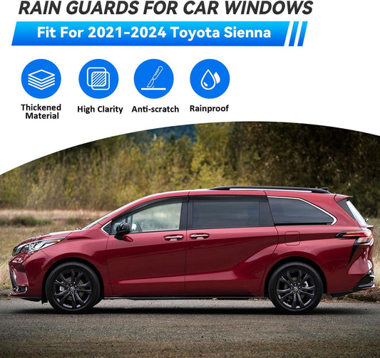 4pcs Front+Rear Smoke Tint Sun/Rain Guard Outside Mount Tape-On Vent Window Visors Compatible with 2021-2024 Toyota Sienna