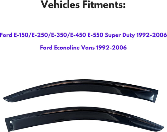 KPY Window Visor Compatible with 1992-2006 Ford E150 E250 E350 E450 E550 Super Duty, Rain Guard Window Vent Deflectors Tape-On for Ford Econoline Vans 1992-2006, 2000 2001 2002 2003 2004 2005