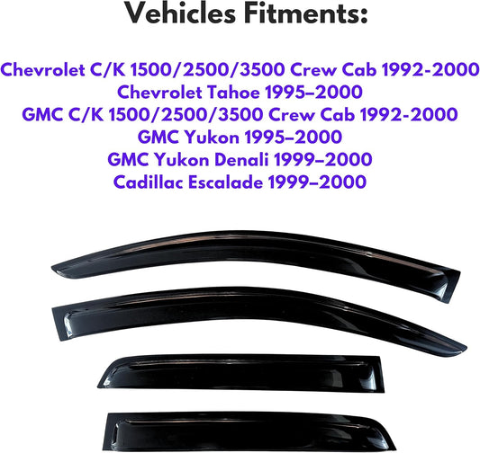 KPY Window Visor Compatible with 1995-2000 Chevy Tahoe/GMC Yukon, Rain Guard Window Vent Deflectors Tape-On for 92-00 C/K1500/2500/3500 Suburban, 99-00 Cadillac Escalade/Yukon Denali Crew Cab