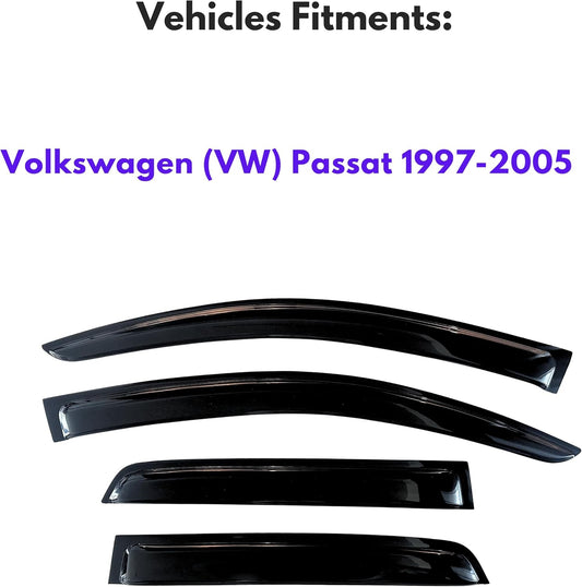 KPY Window Visor Compatible with Volkswagen (VW) Passat 1997-2005, Rain Guard Window Vent Deflectors Tape-On Style, 1997 1998 1999 2000 2001 2002 2003 2004 2005