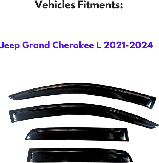 KPY Window Visor Compatible with Jeep Grand Cherokee L 2021-2024, Rain Guard Window Vent Deflectors Tape-On Style, 2021 2022 2023 2024 (Only for L Model)