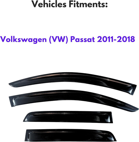 KPY Window Visor Compatible with Volkswagen (VW) Passat 2011-2018, Rain Guard Window Vent Deflectors Tape-On Style, 2011 2012 2013 2014 2015 2016 2017 2018