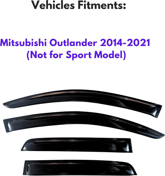 KPY Window Visor Compatible with Mitsubishi Outlander 2014-2021, 4PC Rain Guard Side Window Vent Deflectors Tape-On Style, 2014 2015 2016 2017 2018 2019 2020 2021 (Not for Sport Model)