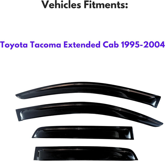 KPY Window Visor Compatible with Toyota Tacoma Extended Cab 1995-2004, Rain Guard Vent Deflectors Tape-On, 1995 1996 1997 1998 1999 2000 2001 2002 2003 2004 (Extended Cab Only)