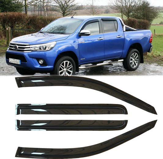 4pcs Outside Mount Style Dark Smoke Window Rain Guards Durable Side Wind Deflectors Vent Window Visors Fit for 2005-2021 Toyota HILUX Crew Cab Pickup