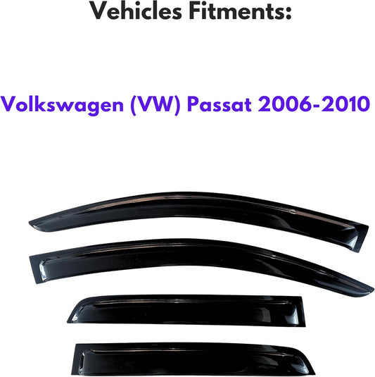 KPY Window Visor Compatible with Volkswagen (VW) Passat 2006-2010, Rain Guard Window Vent Deflectors Tape-On Style, 2006 2007 2008 2009 2010
