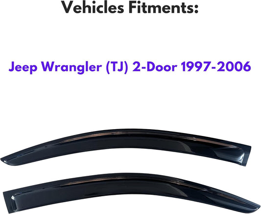 KPY Window Visor Compatible with 1997-2006 Jeep Wrangler (TJ) 2-Door, Rain Guard Vent Deflectors Tape-On, 1997 1998 1999 2000 2001 2002 2003 2004 2005 2006