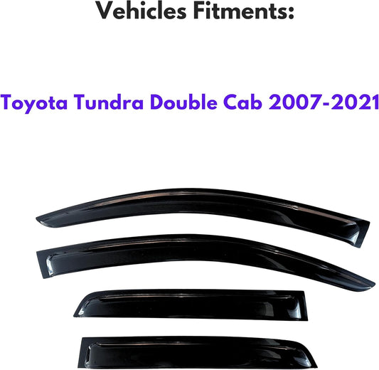 KPY Window Visor Compatible with Toyota Tundra Double Cab 2007-2021, Rain Guard Window Vent Deflectors Tape-On Style, 2008 2009 2010 2011 2012 2013 2014 2015 2016 2017 2018 2019 2020 (Double Cab Only)