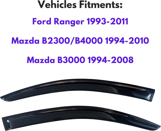 KPY Window Visor Compatible with Ford Ranger 1993-2011 & Mazda B2300/B4000 1994-2010 & Mazda B3000 1994-2008, Rain Guard Side Window Vent Deflectors Tape-On Style, 2002 2003 2004 2005 2006 2007 2009