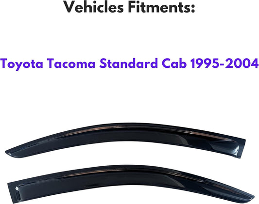 KPY Window Visor Compatible with Toyota Tacoma Standard Cab 1995-2004, Rain Guard Window Vent Deflectors Tape-On Style, 1995 1996 1997 1998 1999 2000 2001 2002 2003 2004 (Standard Cab Only)