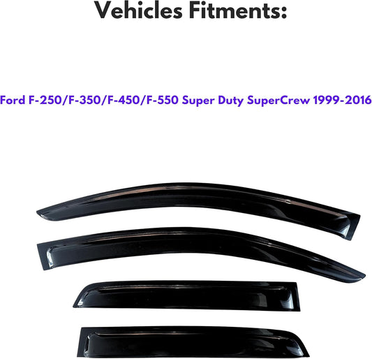 KPY Window Visors Compatible with Ford F250 F350 F450 F550 Super Duty SuperCab 1999-2016, 4PC Rain Guard Side Vent Deflectors Tape-On Style (SuperCab Only)